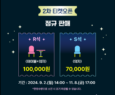 예스24 홈페이지에서 단독으로 진행하며, S석과 R석이 있습니다.